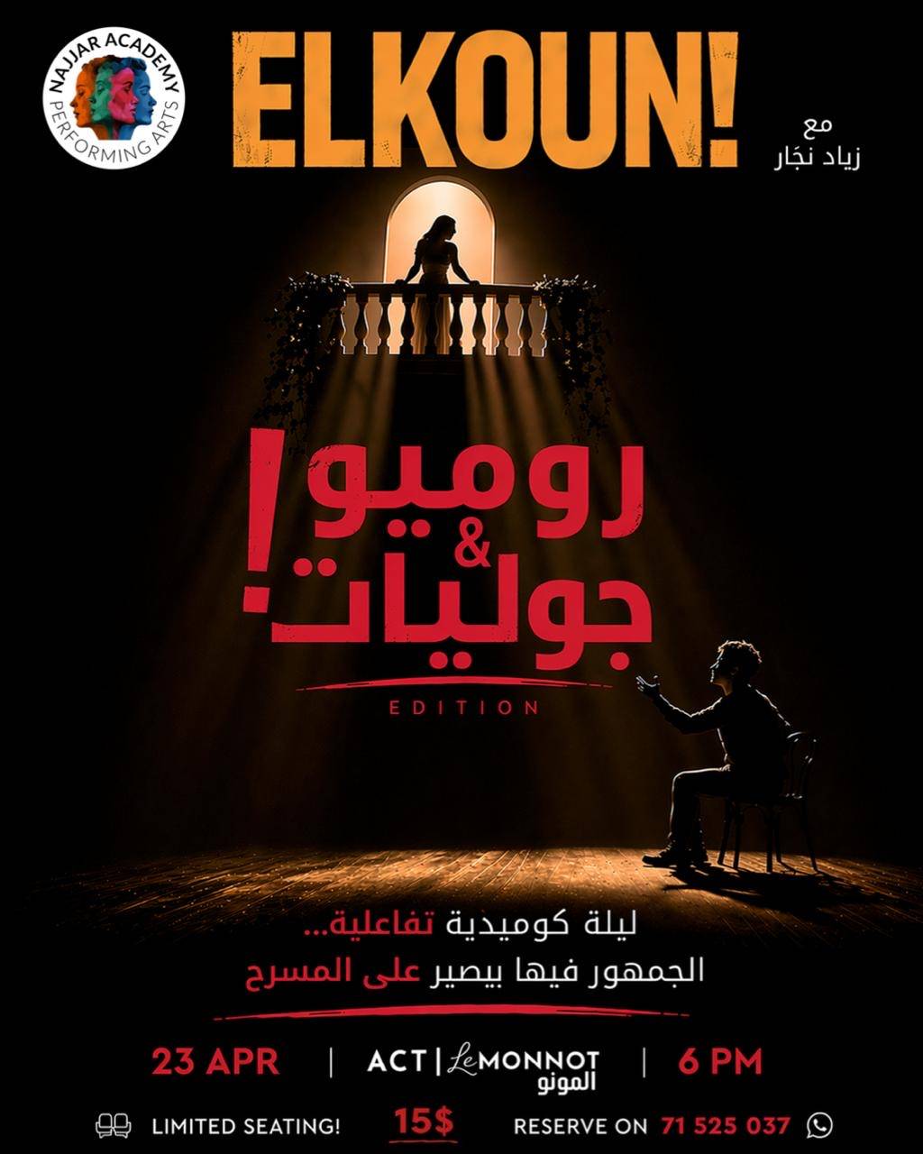 أما عمله الجديد، الذي يستهل به الموسم الثاني من «إلكن»، فيدور أيضاً في إطار كوميدي. ويوضح أنه ابتداءً من 23 أبريل (نيسان) سيقدّم معالجة لمسرحية «روميو وجوليات» بروح لبنانية معاصرة، مع الحرص على تغيير قصص المشروع كل أسبوعين، ما يفتح آفاقاً واسعة أمام الهواة ومحبي المسرح. ويتابع: «في (روميو وجوليات) سيكتشف الحضور شخصيات تشبههم وتمثّل نماذج من المجتمع اللبناني بمناطقه المختلفة».