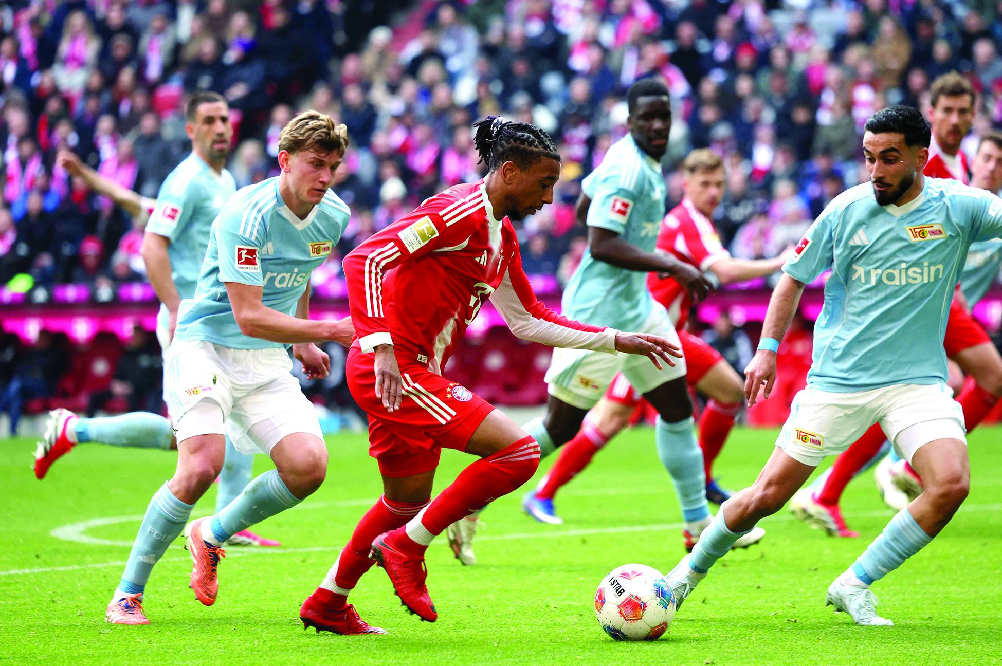 سجل مايكل أوليس مع بايرن ميونيخ 16 هدفاً في جميع المسابقات هذا الموسم (أ.ف.ب)