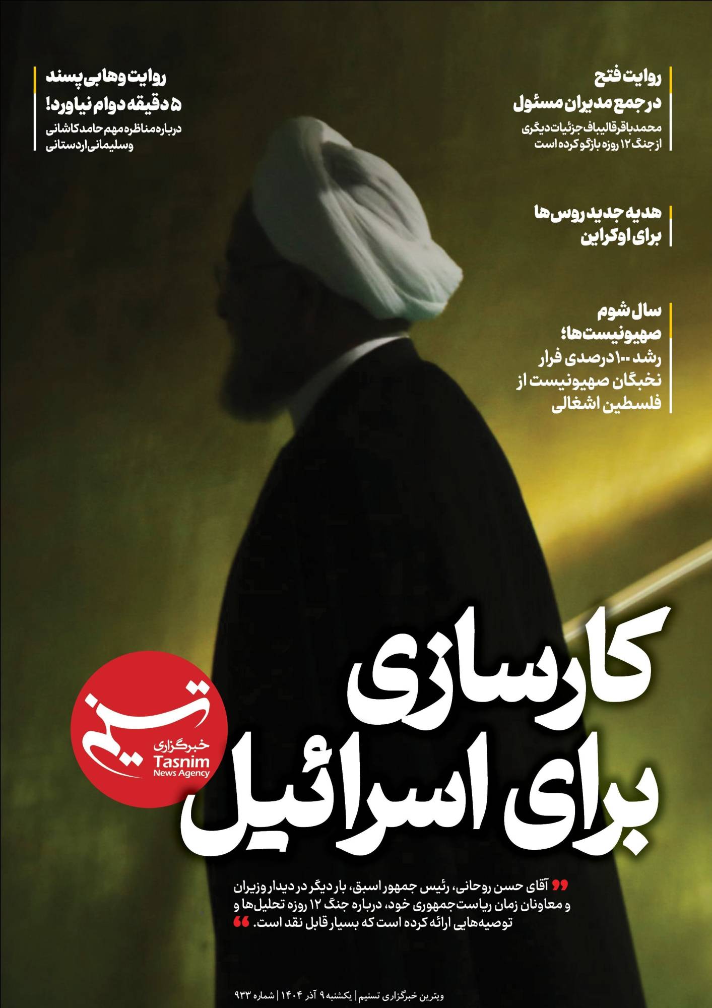 غلاف النشرة الأسبوعية لوكالة «تسنيم» التابعة لـ«الحرس الثوري» الذي يتهم روحاني بتقديم الخدمة لإسرائيل