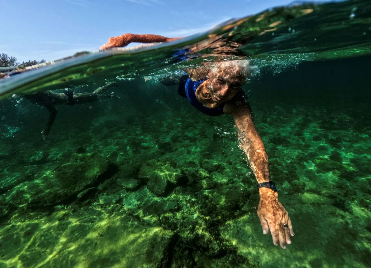 الآن، يمضي هذا الثمانيني ساعتين كاملتين يومياً يشق طريقه عبر مياه البحر الكاريبي الفيروزية، ولديه الكثير من ألقاب السباحة للهواة. ويضيف مبتسماً: «لا أجد منافسين تقريباً. في فئتي العمرية، قليلون هم من يجيدون السباحة». كان لازارو دياز البالغ 75 عاماً، متقاعداً أيضاً عندما تعلّم السباحة بوصفها علاجاً لمشكلات القلب وآلام الظهر المتكررة.