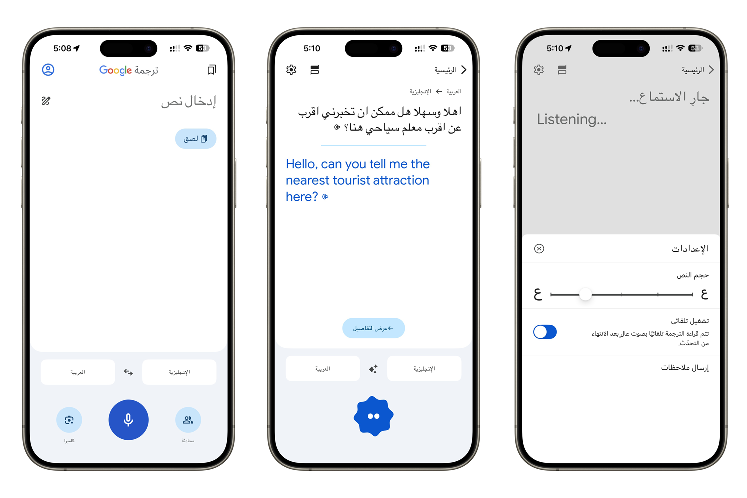 الميزة الأولى التي قدّمتها «غوغل» تحت اسم «Live Conversations Translated in Real Time» أو «محادثات حية مُترجمة في الوقت الفعلي»، تُعدّ نقلة نوعية في عالم التواصل بين اللغات. عبر هذه الخاصية أصبح بإمكان شخصين يتحدثان بلغتين مختلفتين إجراء محادثة طبيعية وسلسة دون الحاجة إلى طرف ثالث. كل متحدث يستخدم لغته الأم، بينما يتكفل الذكاء الاصطناعي بترجمة الكلام مباشرة صوتاً ونصاً إلى لغة الطرف الآخر. ما يجعل التقنية فريدة أنها لا تكتفي بالترجمة الآلية الباردة، بل تحاول تقليد إيقاع الحوار الطبيعي من خلال إدراك التوقفات أثناء الكلام، واستيعاب اختلافات النطق واللهجات، حتى عكس النغمة العاطفية في الصوت. بهذه الطريقة يصبح الحوار أكثر قرباً إلى الواقع، بعيداً عن الجمود الذي اعتدنا عليه في تطبيقات الترجمة التقليدية. الميزة باتت متوفرة حالياً في الولايات المتحدة والسعودية، إلى جانب عدد من الدول الأخرى، وتعمل على أنظمة أندرويد وآيفون، مع دعم لأكثر من 70 لغة، تشمل العربية، الفرنسية، الإسبانية، الهندية، الكورية، الإنجليزية.