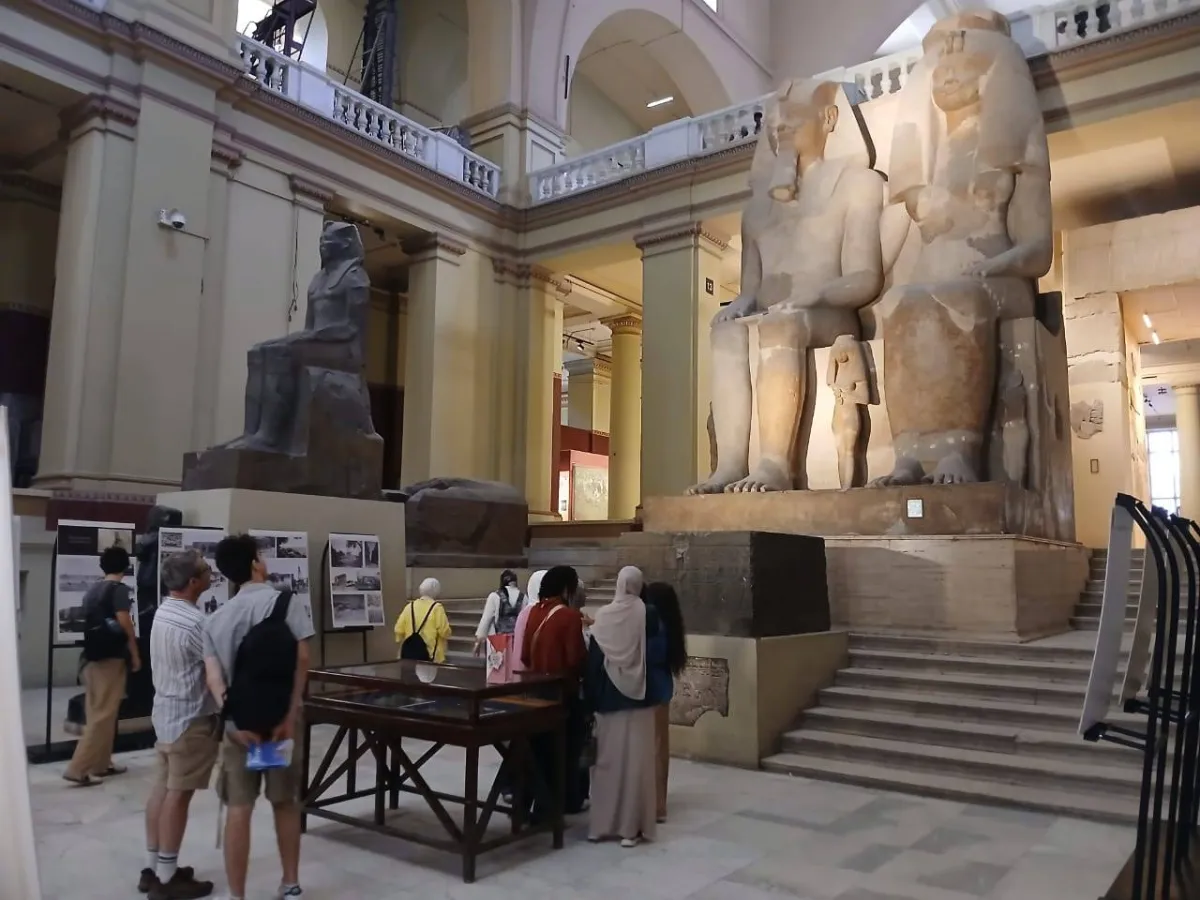 تمثال مهيب للملك أمنحتب الثالث وزوجته الملكة تي في المتحف المصري (الشرق الأوسط)