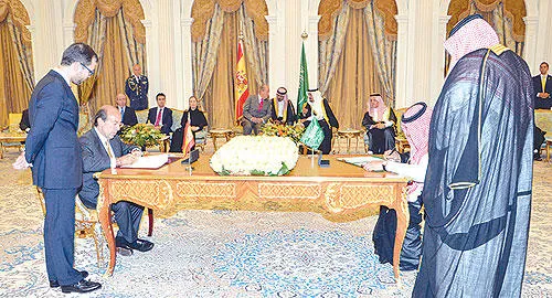 حضر التوقيع الأمير سعود الفيصل وزير الخارجية، والأمير محمد بن سلمان بن عبد العزيز وزير الدولة عضو مجلس الوزراء رئيس ديوان ولي العهد المستشار الخاص له، والأمير منصور بن خالد بن فرحان سفير السعودية لدى إسبانيا، والدكتور توفيق بن فوزان الربيعة وزير التجارة والصناعة (الوزير المرافق)، والدكتور نزار بن عبيد مدني وزير الدولة للشؤون الخارجية، ومن الجانب الإسباني الوفد الرسمي المرافق للملك خوان كارلوس.