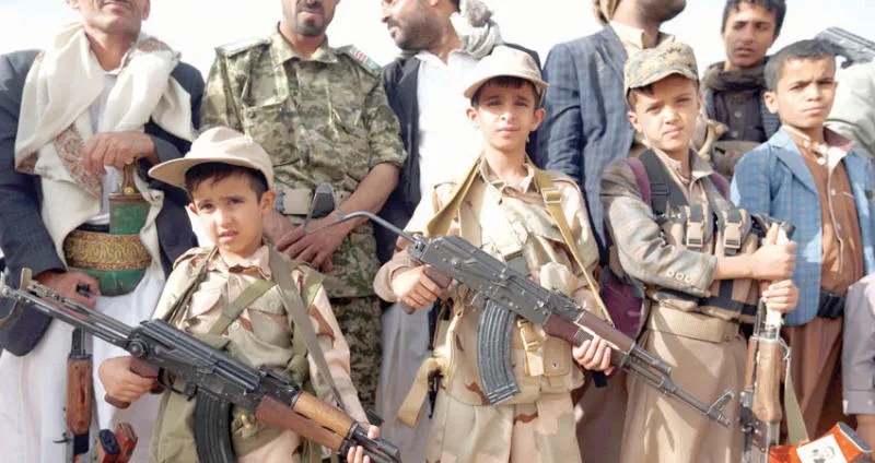 أطفال يحملون أسلحة في استعراض لقوى الانقلاب في صنعاء (أ.ف.ب)