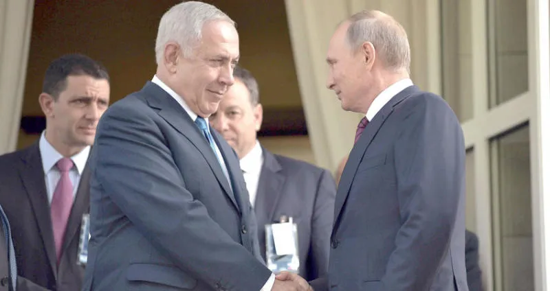 بوتين ونتانياهو قبل لقائهما في سوتشي امس (إي. بي. أيه)