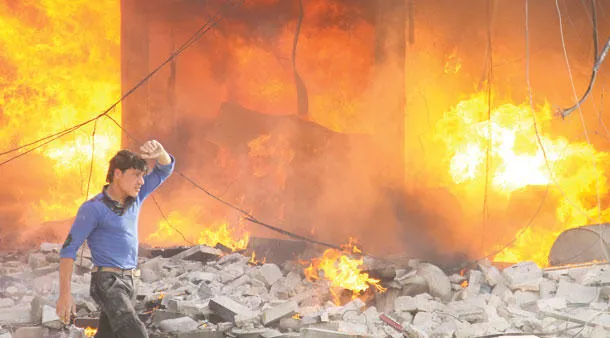 اتهامات للنظام السوري بإلقاء قنبلة كلور على بلدة كفرزيتا في حماه