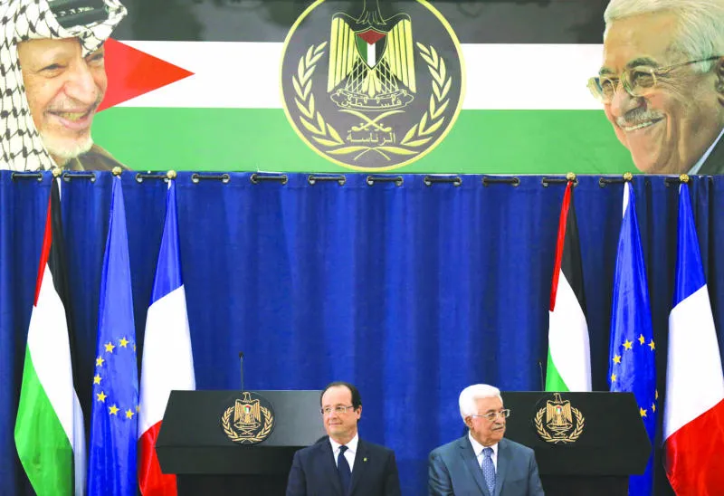 واستهل هولاند زيارته إلى رام الله بوضع إكليل من الزهور على ضريح الرئيس الراحل ياسر عرفات، ثم التقى بعباس، قبل أن ينطلق عائدا إلى إسرائيل التي يغادرها اليوم إلى فرنسا. وقال هولاند «إن أمن إسرائيل لن يتحقق إلا بإقامة دولة فلسطينية قابلة للحياة». وطالب إسرائيل بوقف الاستيطان «الذي يقوض مفاوضات السلام»، مؤكدا رفض فرنسا للاستيطان الإسرائيلي في الأراضي الفلسطينية.