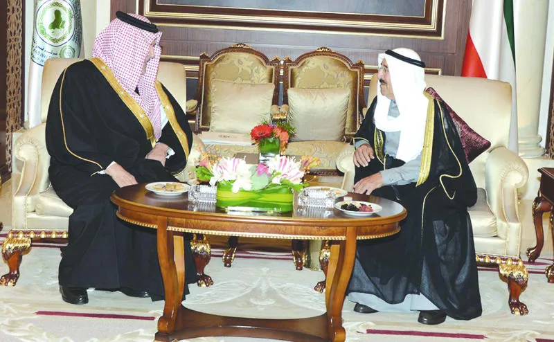 الشيخ صباح الأحمد خلال استقباله وزير الخارجية السعودي الأمير سعود الفيصل لدى وصوله للكويت للمشاركة في أعمال القمة العربية الأفريقية