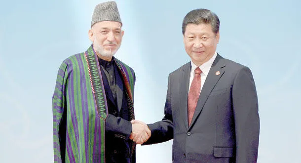 الرئيس الصيني يستقبل نظيره الأفغاني حميد كرزاي قبل انطلاق مؤتمر شنغهاي أمس (أ.ب)