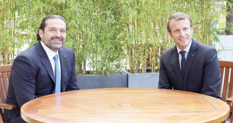 ماكرون خلال لقائه الحريري في باريس أول من أمس (أ.ب)