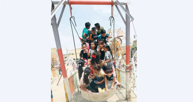 أطفال يحتفلون بعيد الأضحى في حديقة بوسط بغداد أمس (إ.ب.أ)