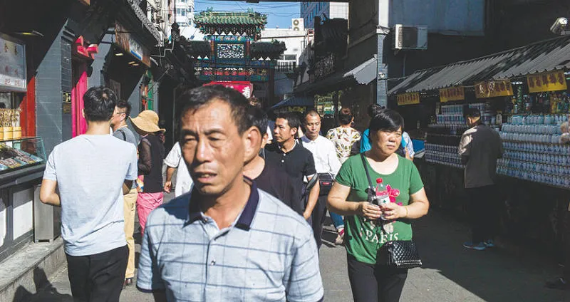سياح يسيرون في أحد أسواق بكين (أ.ف.ب)