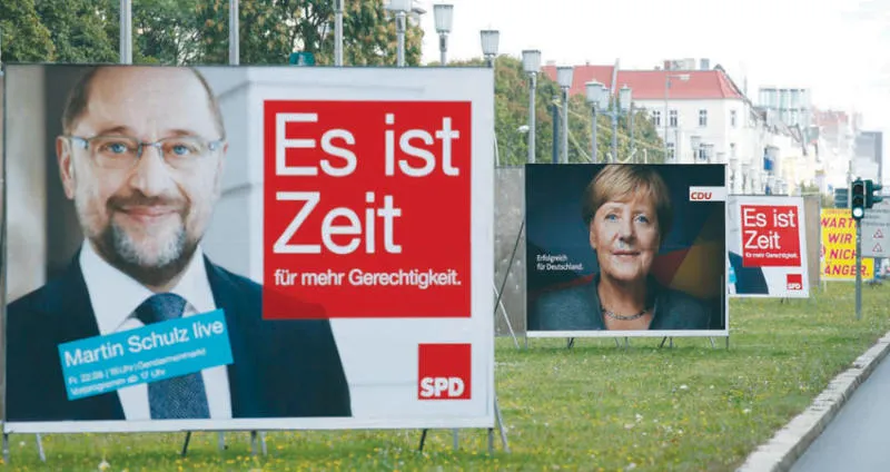 لافتات لميركل والاشتراكي شولتز (رويترز)