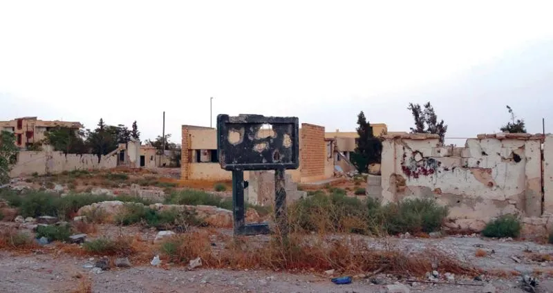 صورة وزعتها وزارة الدفاع الروسية لبلدة عقيربات في ريف حماة. (أ ف ب)