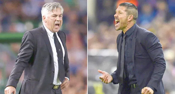 فمدرب ريال الإيطالي كارلو أنشيلوتي (54 عاما) الذي يخوض اليوم النهائي الرابع له في المسابقة كمدرب (فاز مع ميلان عامي 2003 و2007 وخسر في 2005) والسادس بالمجمل (توج به كلاعب في ميلان عامي 1989 و1990)، هو مثال المدرب الهادئ الذي منح ريال رباطة الجأش في موسمه الأول معه، فيما يمثل نظيره الأرجنتيني في أتلتيكو دييغو سيميوني (44 عاما) شخصية المدرب الشغوف والحماسي الذي يدفع لاعبيه إلى القتال في أرضية الملعب على كل كرة.