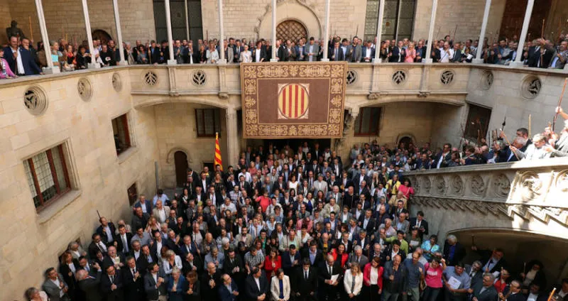 حيث تظاهر في برشلونة نهاية الأسبوع المنقضي أكثر من 700 رئيس بلدية في كاتالونيا لإظهار عزمهم على تنظيم الاستفتاء على استقلال كاتالونيا رغم تهديد النيابة العامة بتوقيفهم.