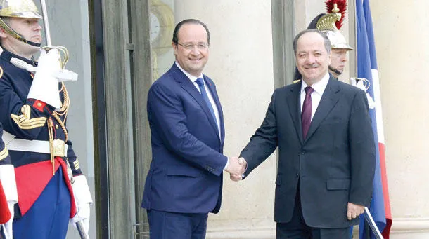 في محطته الأولى من الجولة الأوروبية، باريس، قبل زيارته لروما والفاتيكان، التقى رئيس إقليم كردستان العراق مسعود بارزاني، رئيس الجمهورية الفرنسية فرنسوا هولاند في قصر الإليزيه، أمس، وذلك بعد نحو عام من زيارته السابقة إلى العاصمة الفرنسية.
