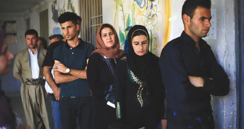 طابور أمام مركز اقتراع في كركوك أمس (رويترز)