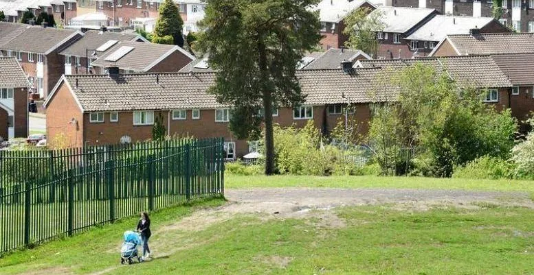 امرأة تسير أمام مجمع سكني في ويلز (رويترز)