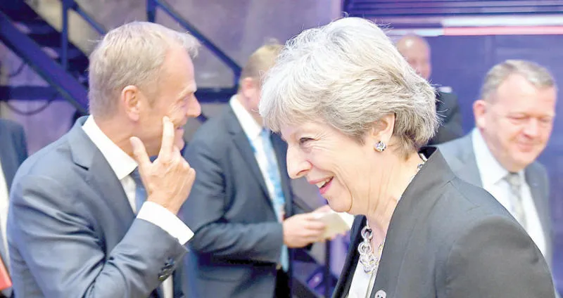 تيريزا ماي خلال القمة الأوروبية في إستونيا (أ.ف.ب)