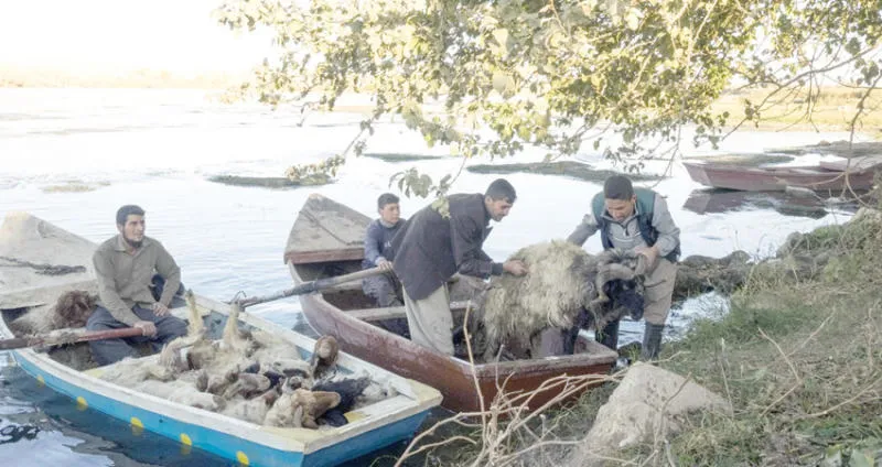 يعبرون مع خرافهم نهر دجلة شمال قرية المنيرة