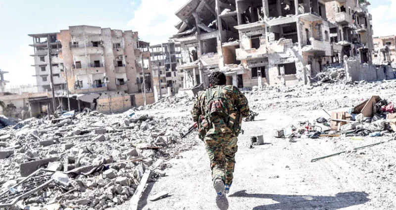 عنصر من «قوات سوريا الديمقراطية» خلال مواجهات ضد «داعش» في مدينة الرقة مطلع هذا الشهر. (أ. ف. ب)