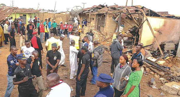 آثار عملية إرهابية وسط نيجيريا أمس قتل فيها ثمانية مدنيين (إ.ب.أ)