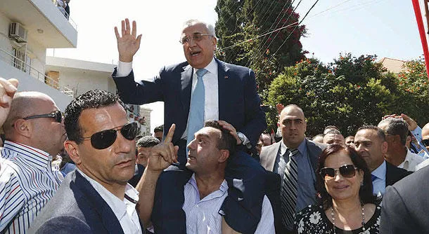 الرئيس اللبناني السابق ميشال سليمان لدى وصوله إلى بلدته عمشيت (شمال بيروت) بعد انتهاء ولايته الدستورية أمس (تصوير: دالاتي ونهرا)