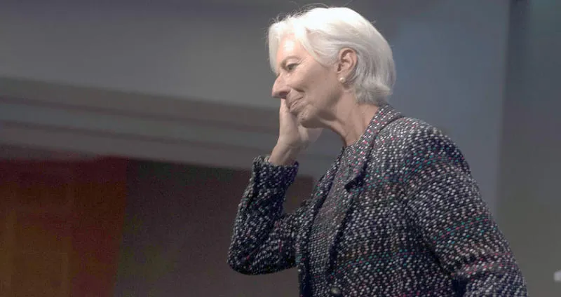 وأشارت لاغارد، في كلمتها، إلى أن «التعافي ليس كاملاً»، حيث إن «بعض البلدان تنمو ببطء شديد. وفي العام الماضي، سجل نمو إجمالي الناتج المحلي للفرد مستويات سالبة في 47 بلداً... ولا يزال عدد هائل من الناس - في مختلف أنواع الاقتصادات - لا يلمسون ثمار التعافي حتى الآن»، محذرة من مجموعة من المخاطر التي تلوح برأيها في الأفق «بدءاً من ارتفاع مستويات الدين في كثير من البلدان، إلى التوسع الائتماني السريع في الصين، وانتهاءً بفرط المخاطرة في الأسواق المالية»، بحسب كلمتها، إضافة إلى أشارتها إلى عوامل على غرار بطء النمو، وتزايد عدم المساواة في الاقتصادات المتقدمة، والفشل في التكيف مع التغير التكنولوجي. وقالت إنه «نتيجة لذلك، فإن نسيجنا الاجتماعي يتفكك، وتشهد كثير من الدول استقطاباً سياسياً متزايداً».