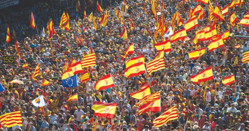 مئات آلاف الإسبان يشاركون في أول مظاهرة ببرشلونة ضد استقلال كاتالونيا
