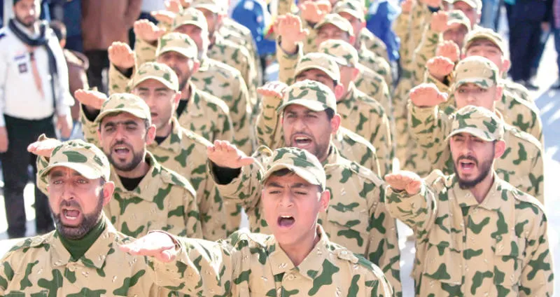 استعراض لقوات من «حزب الله» في فبراير الماضي لتكريم مقاتلين من الحزب (أ.ب)