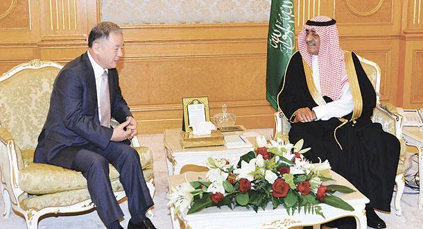 الأمير مقرن بن عبد العزيز خلال استقباله سفير كوريا الجنوبية (واس)
