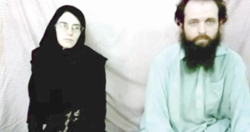 الكندي جوشوا بويل وزوجته الأميركية كاتلين كوليمان في شريط فيديو بثته طالبان عقب اختطافهما أثناء رحلة في أفغانستان عام 2012 (أ.ب)