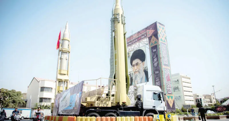 استعراض صاروخ باليستي في ساحة «بهارستان» وسط طهران (رويترز)