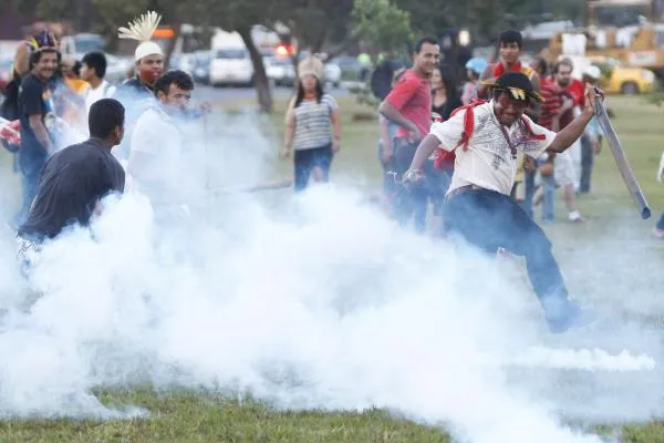 أطلقت الشرطة البرازيلية اليوم (الاربعاء)، الغاز المسيل للدموع لتفريق محتجين رافضين لكأس العالم، حاولوا الخروج في مسيرة الى مدرّج كرة القدم في برازيليا، حيث كان كأس البطولة معروضا للجماهير.