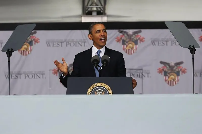 وفي نهاية خطابه قال أوباما إنّ "القيادة الدولية ترغمنا على رؤية العالم كما هو وعلينا الاستعداد لكل طارئ... ولكن القيادة الأميركية ترينا ايضا العالم كيف يجب ان يكون، وذلك يقودنا الى تحقيق الحرية والعدالة، ولا يمكننا فعل ذلك من دون خريجي الأكاديمية العسكرية الذين سيجسدون معنى قيادة أميركا للعالم".