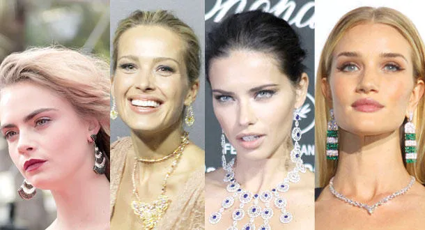 العارضة البريطانية روزي هانتينتون وايتلي ومجوهرات من «دي غروزوغونو»  -  أدريا ليما ومجوهرات من «شوبار»  -  العارضة التشيكية بترا نمكوفا في مجوهرات «شوبار»  -  عارضة الأزياء البريطانية كارا ديلفين ومجوهرات من «دي غروزوغونو»