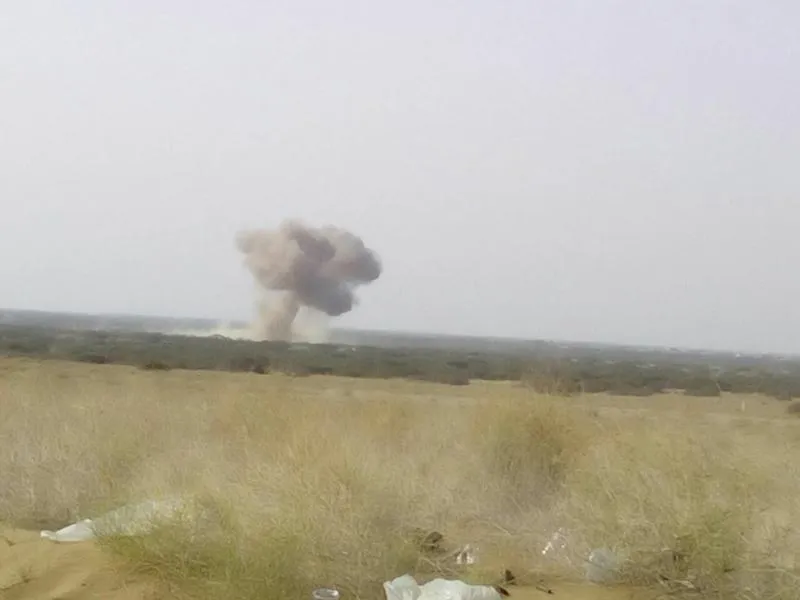جانب من عملية استهداف مواقع للانقلابيين في حرص التابعة لمحافظة حجة  أول من أمس الأربعاء (موقع الجيش اليمني)