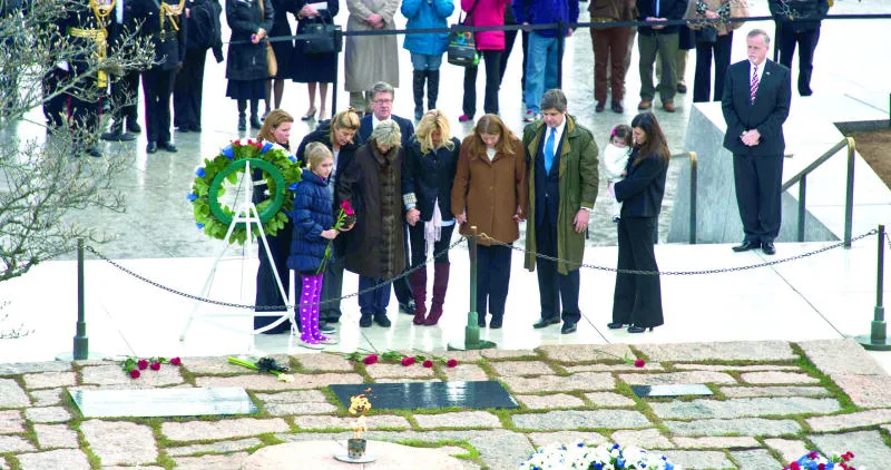 ولحظة إعلان الرئيس ثم صور مقتله في سيارة ليموزين مكشوفة وإلى جانبه جاكي وهي ترتدي تايور شانيل زهري اللون ما زالت حية في الذاكرة الجماعية. وقد دفن جون كينيدي في المقبرة العسكرية في آرلينغتون بضاحية واشنطن التي يزورها سنويا حوالي ثلاثة ملايين شخص وحيث وضع الرئيس أوباما الأربعاء إكليلا من الزهور.