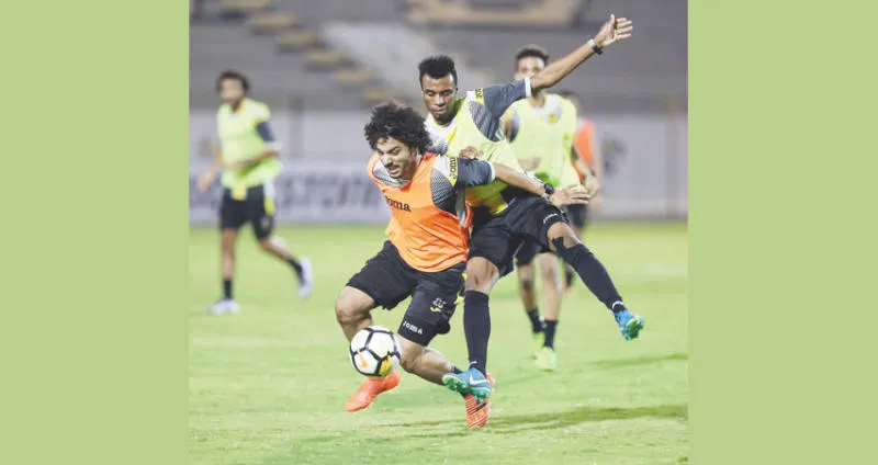 لاعبو الاتحاد خلال حصة تدريبية استعداداً لمواجهة الفتح (المركز الإعلامي لنادي الاتحاد)