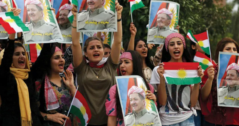 طالبات جامعة صلاح الدين في أربيل يتظاهرن دعماً لمسعود بارزاني (أ.ف.ب)