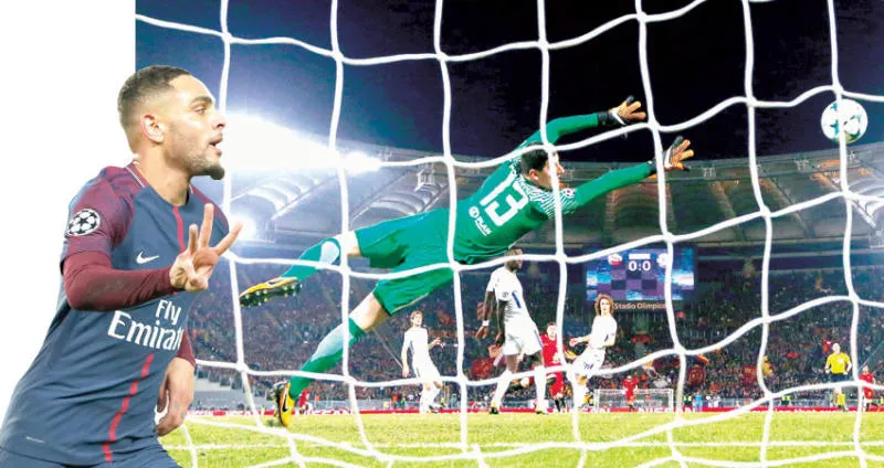 كورتوا حارس تشيلسي في محاولة فاشلة للتصدي لتسديدة الشعراوي نجم روما (رويترز) - كورزاوا سجل ثلاثية لسان جيرمان في مرمى أندرلخت (إ.ب.أ)