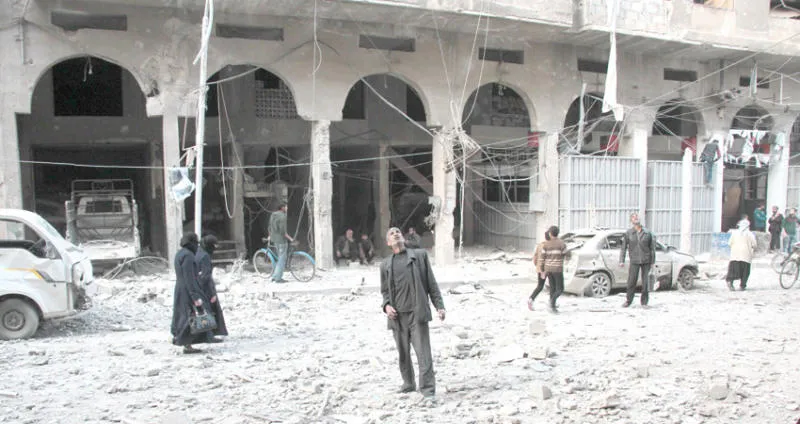 مظاهر الدمار بعد غارة على دوما أمس (أ.ف.ب)