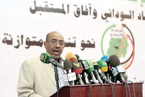 الرئيس السوداني عمر البشير يتحدث في منتدي اقتصادي بالخرطوم أمس (أ. ف.ب)