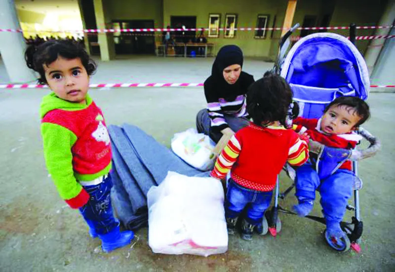 لاجئة سورية هربت خشية ضياع أرواح أطفالها وتحمل مساعدات الأمم المتحدة في لبنان نهاية الأسبوع الماضي (أ.ف.ب)