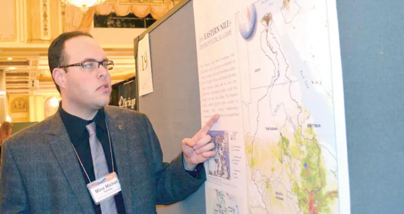 مينا يشرح ما توصل إليه في بحثه عن التنمية العمرانية بحوض نهر النيل