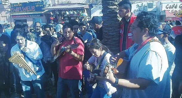 ولم يقتصر الأمر على الصينيين والأوروبيين، بل طال الأمر حتى الأميركيين اللاتينيين، بعد أن ارتأت فرقة موسيقية أتت مراكش من الإكوادور للعمل ليلا في أحد المركبات السياحية بمنطقة النخيل السياحية، أن تقتل ساعات النهار في إمتاع جمهور الساحة، بعدد من الأغاني والمعزوفات اللاتينية.