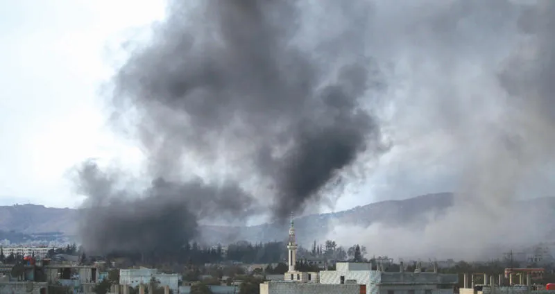 دخان يتصاعد بعد قصف حرستا شرق دمشق أمس (أ.ف.ب)
