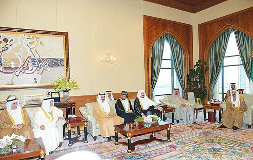 أمير الكويت مستقبلا رؤساء المجالس التشريعية الخليجية في قصر بيان أمس