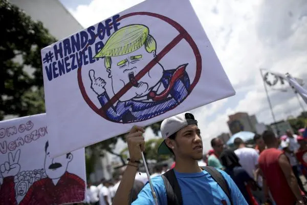 شهدت فنزويلا مسيرات شعبية تنديداً بالعقوبات الأميركية التي تربطها الحكومة بتردي الأوضاع في البلاد. (ا.ب)